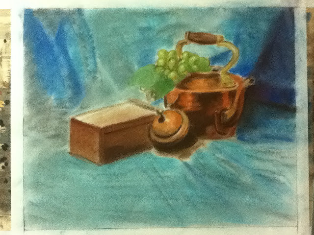 Tea pot and box study on pastel.